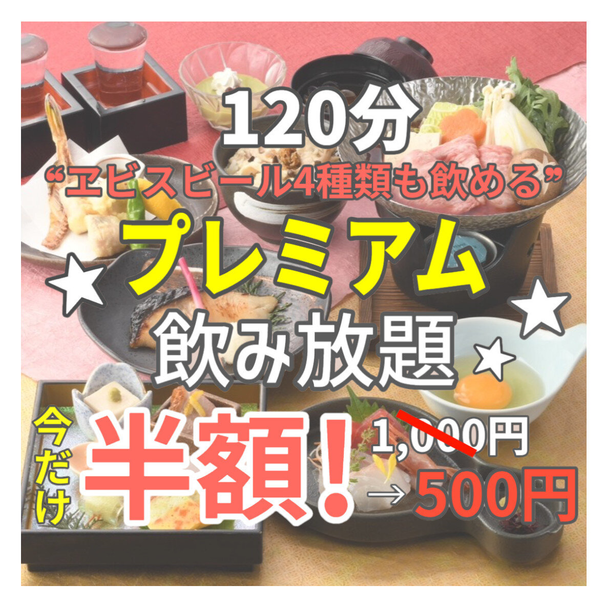 ◇プレミアム飲み放題がお得に飲める期間限定のプランです!(お席は120分制)