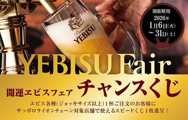 全国のサッポロライオンチェーン(一部店舗を除く)にて、『開運!ヱビスフェア』を開催します!