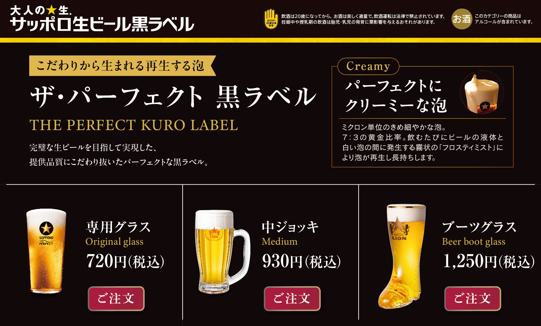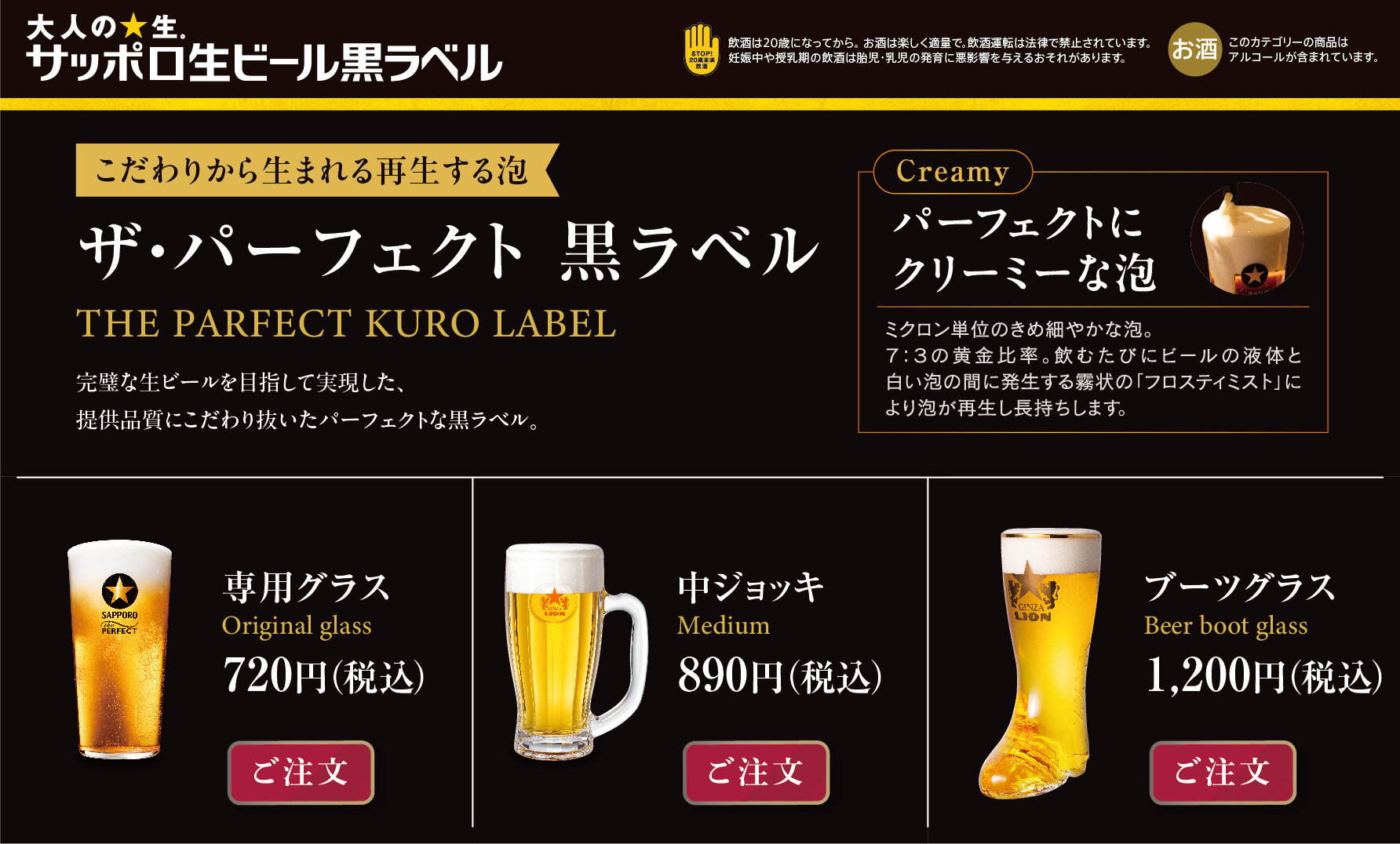 提供品質にこだわりぬいたパーフェクトな黒ラベル。 -