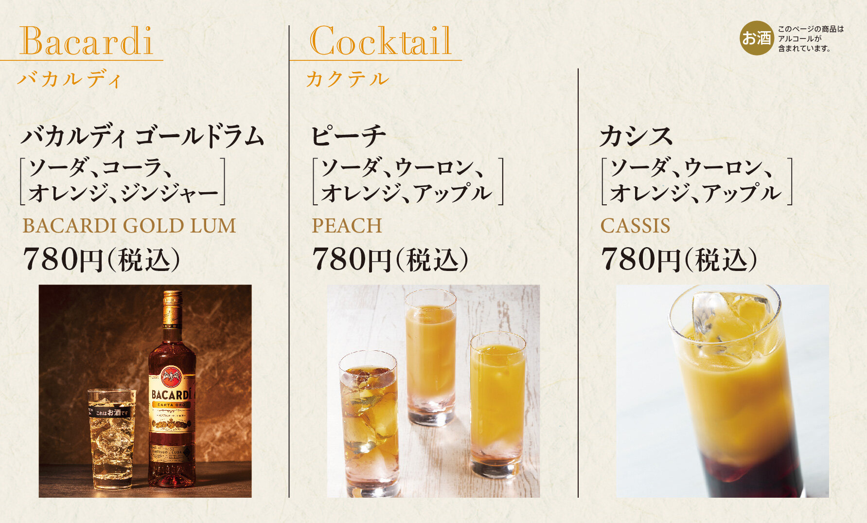 ●ピーチ(ソーダ、ウーロン、オレンジ、アップル)