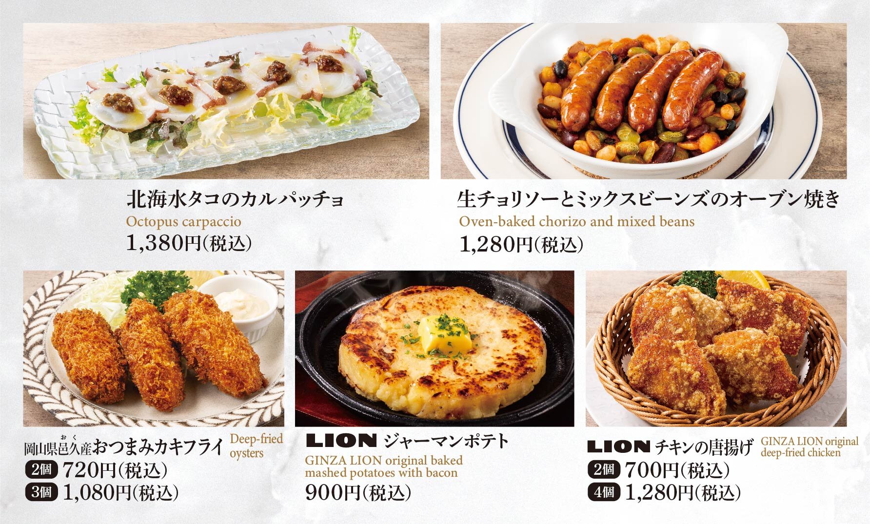 【公式HP限定】【120分飲み放題】銀座ライオンの定番料理を集めた人気プラン「クラシックLIONコース」6品 6,300円⇒6,000円(税込)