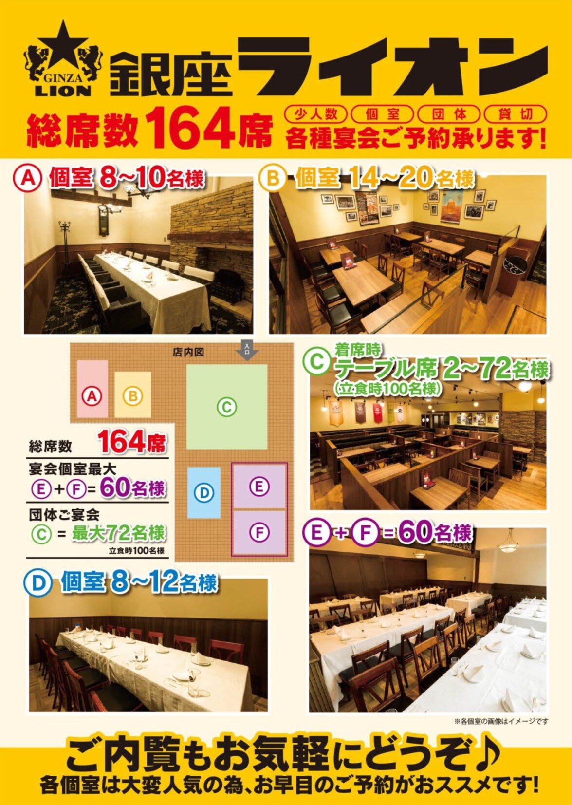 銀座ライオンの定番料理を集めたビヤホールをカジュアルに楽しむプラン!コース品数:全6品/利用人数:1名様~OK