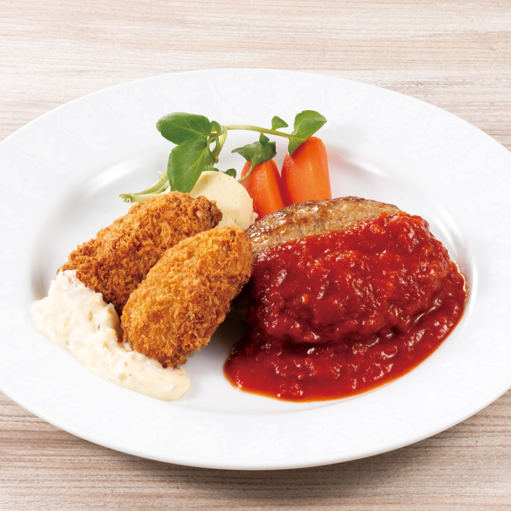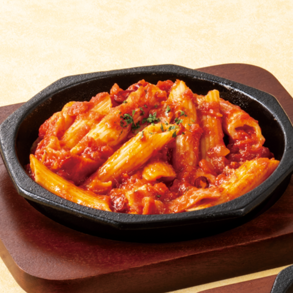 鉄板ハンバーグ トマトペンネソース(ライスorパンorミニサラダ付き)
