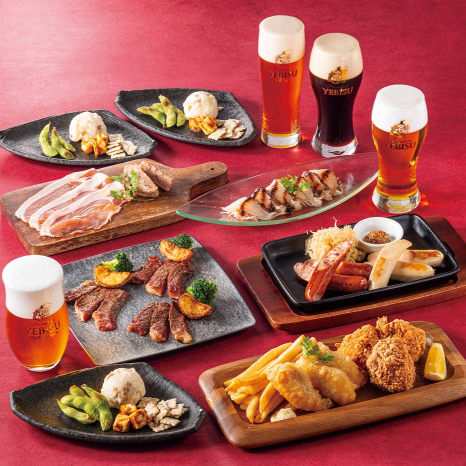 お料理7皿と通常飲み放題でヱビスを満喫できる。
